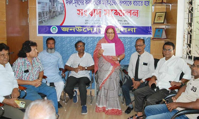 ২৩ অক্টোবর বৃহস্পতিবার বেলা সাড়ে ১২ টায় জনউদ্যোগ,খুলনার উদ্যোগে খুলনা সিভিল সোসাইটির মিলনায়তনে রূপসা, ভৈরব ও ময়ূর নদসহ ২২টি খালের দূষণ ও অবৈধ স্থাপনা উচ্ছেদের দাবিতে সংবাদ সম্মেলন অনুষ্ঠিত হয়েছে। সংবাদ সম্মেলনে লিখিত বক্তব্য রাখেন জনউদ্যোগ খুলনার নারী সেলের আহবায়ক এ্যাডভোকেট শামীমা সুলতানা শীলু। সাংবাদিকদের প্রশ্নের উত্তর দেন জনউদ্যোগ,খুলনার সদস্য সচিব সাংবাদিক মহেন্দ্রনাথ সেন।