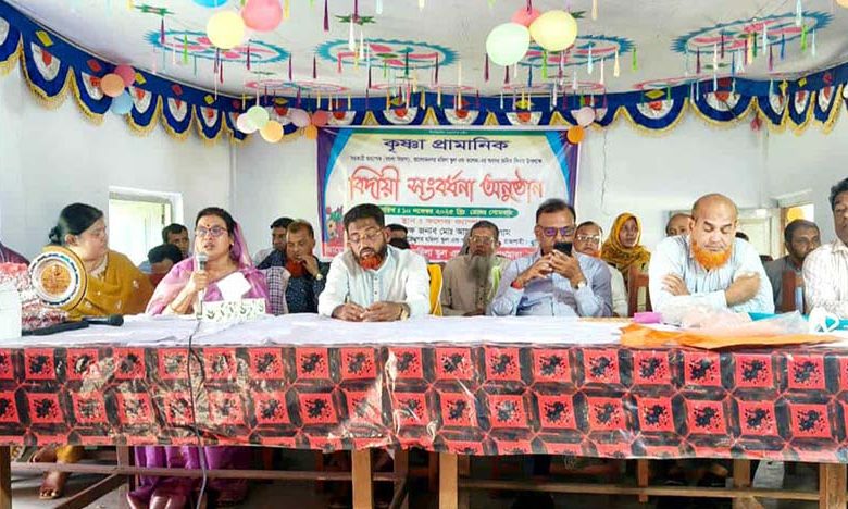 সহকারী প্রধান শিক্ষক রাশেদুল হক ফিরোজের সঞ্চালনায় এসময় বক্তব্য দেন, বিদায়ী সহকারী অধ্যাপক কৃষ্ণা প্রামানিক, তার স্বামী অবসরপ্রাপ্ত ব্যাংক কর্মকর্তা বীর মুক্তিযোদ্ধা বীরেন্দ্র নাথ সরকার, প্রভাষক আমজাদ হোসেন, সাজেদুর রহমান, মোজাফ্ফর হোসেন, মাহফুজুর রহমান, শিক্ষক আসাদুজ্জামান, ওমর ফারুক, শিক্ষার্থীদের মধ্যে মহুয়া আকতার, সাদিকা আফরিন সুপ্তি, যারিন তাসনিম মেঘলা প্রমূখ।
