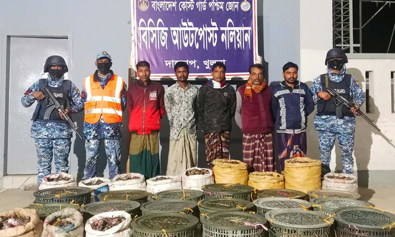 সুন্দরবনের বিপুল পরিমাণ অবৈধ কাঁকড়াসহ ৫ কাঁকড়া ব্যবসায়ী আটক