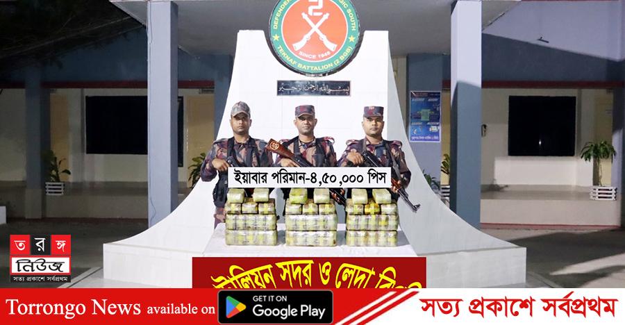 বিজিবির টেকনাফ ব্যাটালিয়ন (২ বিজিবি) ২১-২২ জানুয়ারি ২০২৫ তারিখে দায়িত্বপূর্ণ সীমান্ত এলাকায় মাদকবিরোধী অভিযান পরিচালনা করে ৪ লক্ষ ৫০ হাজার পিস ইয়াবা ট্যাবলেট জব্দ করেছে।