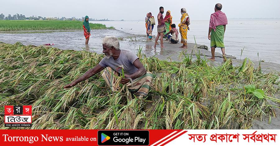 সরেজমিন বুধবার (৭ অক্টোবর) তিস্তা বেষ্টিত থেতরাই, গুনাইগাছ, দলদলিয়া ও বজরা ইউনিয়নের গোড়াই পিয়ারের চর, জুয়ান সতরার চর, হোকডাঙ্গার চর, আমনিয়াসার চর,কর্পূরের চর, গাবরের চর, অর্জুন চর, চাপরার চর, দামার হাট, টিপমার চর, বজরার চর ও সাতালস্কার সহ বিভিন্ন চর গুলোতে গিয়ে দেখা যায়, তিস্তার পানিতে হাজার হেক্টর আবাদি জমি বন্যার পানিতে তলিয়ে যায়। ফলে আমন ধান, বীজ বাদাম, বিভিন্ন ধরনের সবজির চাষ নষ্ট হয়ে হাজার হাজার টাকা ক্ষতিগ্রস্ত হয়েছেন এসব এলাকার কৃষকেরা। একদিকে বন্যার পানি নেমে যাওয়ায় খরা স্রোতে তীব্র ভাঙ্গনে দিশাহারা হয়ে পড়েছেন তিস্তা পাড়ের মানুষজন। তারা নিরুপায় হয়ে ফলন বিহীন আমন ধান কেটে নিয়ে আসছেন।