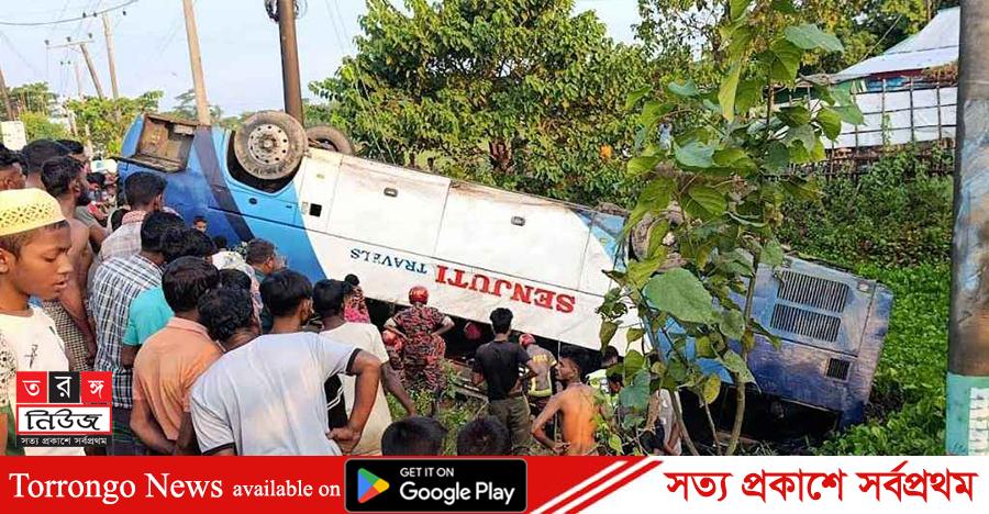 জয়কলস হাইওয়ে থানার ভারপ্রাপ্ত কর্মকর্তা (ওসি) সুমন কুমার চৌধুরী জানান, খবর পেয়ে ফায়ার সার্ভিসের সদস্যদের সহযোগিতায় নিয়ন্ত্রণ হারিয়ে খাদে পড়া বাসের নিচ থেকে দুইজনের মরদেহ ও আহতদের উদ্ধার করা হয়েছে।