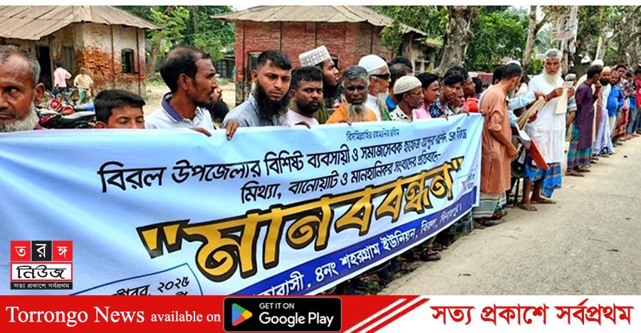 সোমবার (২৭ অক্টোবর ২০২৫) সকাল সাড়ে ১০টা হতে ১১টা পর্যন্ত উপজেলার নাড়াবাড়ী হাটে বাংলাদেশ জামায়াতে ইসলামী বিরল উপজেলা শাখা ও ৪নং শহরগ্রাম ইউনিয়ন ও এলাকাবাসির ব্যানারে এই মানববন্ধন কর্মসূচি পালন করা হয়।