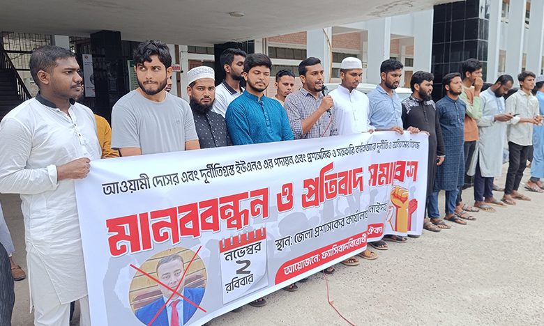 ঝিনাইদহে দুর্নীতিগ্রস্থ ইউএনও এর পদায়ন ও সরকারি কর্মকর্তাদের অনিয়মের বিরুদ্ধে মানববন্ধন