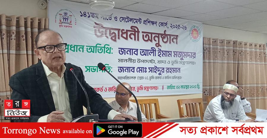 আজ রাজধানীর ডেমরায় করিম জুট মিলস্ লিমিটেড এর সভাকক্ষে বিসিএস ক্যাডারভুক্ত (প্রশাসন,পুলিশ,বন ও রেলওয়ের) এবং জুডিসিয়াল সার্ভিস এর কর্মকর্তাগণের ‘১৪১ তম সার্ভে ও সেটেলম্যান্ট প্রশিক্ষন কোর্সে’র উদ্বোধনী অনুষ্ঠানে তিনি এসব কথা বলেন। এবারে প্রশিক্ষণ কোর্সের আয়োজন করে ভূমি রেকর্ড ও জরিপ অধিদপ্তর। এবারের ৫২ দিনের এই প্রশিক্ষণে মোট ৬০ জন প্রশিক্ষনার্থী অংশগ্রহণ করেন।