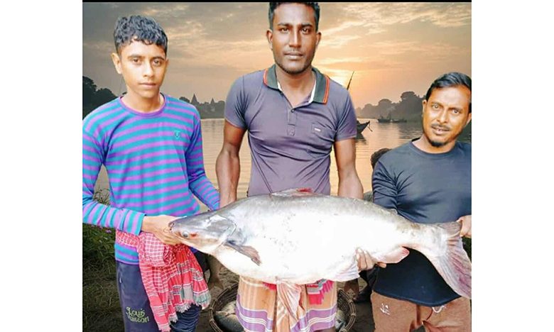 শার্শার ইছামতী নদীতে মৎস্য শিকারীর বড়শিতে উঠলো ১৬ কেজির পাঙ্গাশ