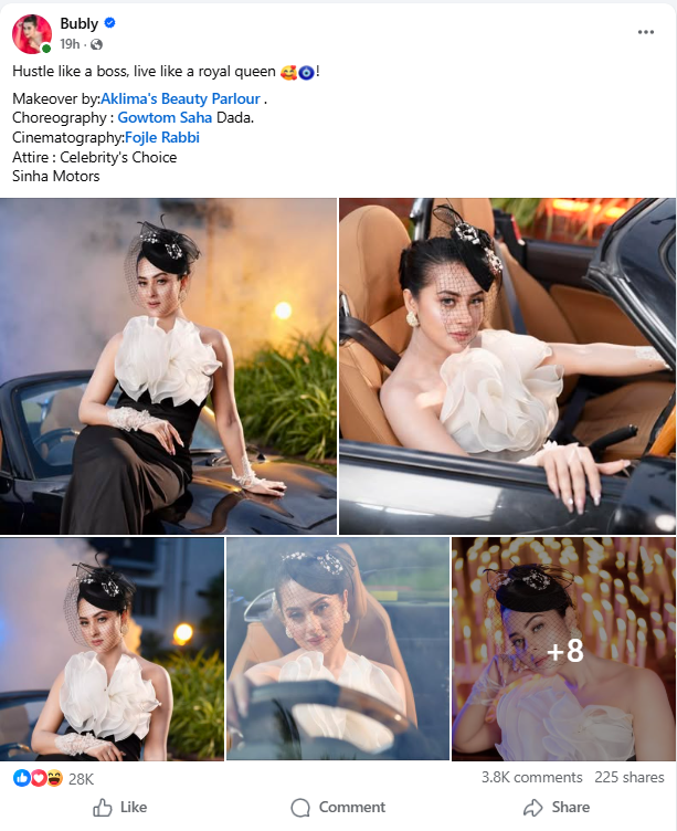 সোশ্যাল মিডিয়ায় সক্রিয় বুবলীর নতুন পোস্টে দ্রুতই হাজার হাজার লাইক ও মন্তব্য এসেছে। একজন ভক্ত লিখেছেন, এই লুক একেবারে কুইনের মতো! আবার কেউ বলেছেন, এ যেন ঢালিউডের হলিউড সংস্করণ।