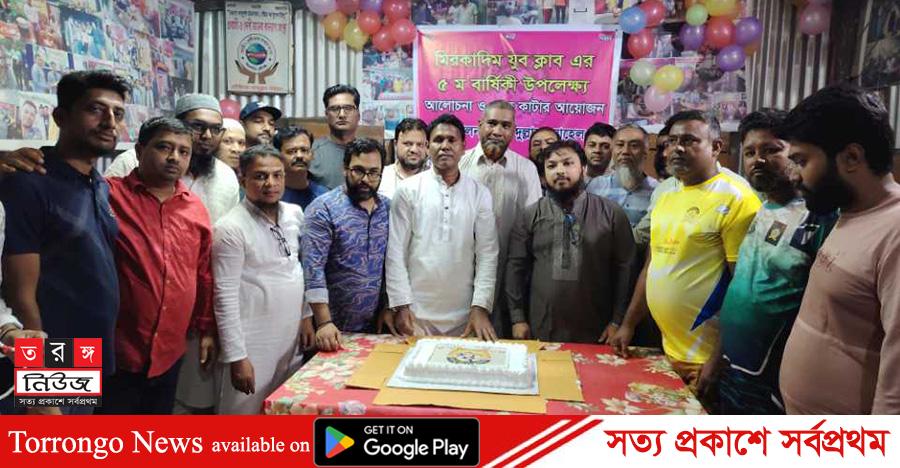 আবু সাঈদ দেওয়ান সৌরভ, মুন্সীগঞ্জ: মুন্সীগঞ্জের মিরকাদিমের সামাজিক ও ক্রীড়া সংগঠন মিরকাদিম যুব ক্লাবের ৫ম প্রতিষ্ঠাবার্ষিকী উদযাপন করা হয়েছে। বৃহস্পতিবার (৬ই নভেম্বর) রাত ৮ টায় উওর রামগোপালপুরে ক্লাবের নিজস্ব কার্যালয়ে কেক কাটা ও আলোচনা সভা ও গুনিজন সম্মাননা প্রদানের মাধ্যমে ৫ম প্রতিষ্ঠা বার্ষিকী আয়োজন পালন করা হয়। " একতা, সেবা, উন্নয়ন" এ তিনটি স্লোগানে গত ৫ বছর যাবৎ এলাকার উন্নয়ন ও দরিদ্র ও অসহায় মানুষের কল্যানে কাজ করে যাচ্ছে প্রতিষ্ঠানটি।