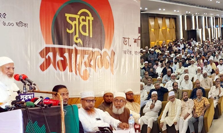 তিনি বৃহস্পতিবার (৬ নভেম্বর) সন্ধ্যায় নগরীর আমান উল্লাহ কনভেনশন হলে সিলেট মহানগর জামায়াত আয়োজিত সুধী সমাবেশে প্রধান অতিথির বক্তব্যে উপরোক্ত কথা বলেন। জামায়াতের কেন্দ্রীয় কর্মপরিষদ সদস্য ও সিলেট মহানগরী আমীর মুহাম্মদ ফখরুল ইসলামের সভাপতিত্বে এবং মহানগর নায়েবে আমীর ড. নূরুল ইসলাম বাবুলের পরিচালনায় অনুষ্ঠিত সমাবেশে বিশেষ অতিথির বক্তব্য রাখেন জামায়াতের সহকারী সেক্রেটারি জেনারেল এডভোকেট এহসানুল মাহবুব জুবায়ের, কেন্দ্রীয় কর্মপরিষদ সদস্য বর্ষীয়ান রাজনীতিবিদ অধ্যাপক ফজলুর রহমান, কেন্দ্রীয় নির্বাহী পরিষদ সদস্য, ঢাকা মহানগরী উত্তরের আমীর ও সিলেট-৬ আসনে জামায়াত মনোনীত সংসদ সদস্য পদপ্রার্থী মুহাম্মদ সেলিম উদ্দিন। স্বাগত বক্তব্য রাখেন কেন্দ্রীয় মজলিসে শূরা সদস্য, সিলেট জেলা আমীর ও সিলেট-১ আসনে জামায়াত মনোনীত সংসদ সদস্য প্রার্থী মাওলানা হাবিবুর রহমান।