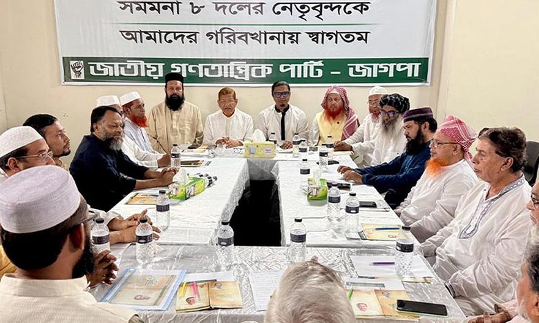 জাগপা সহসভাপতি ও দলীয় মুখপাত্র রাশেদ প্রধান-এর সভাপতিত্বে ৮ দলের লিয়াজোঁ কমিটির বৈঠকে বক্তব্য দেন বাংলাদেশ জামায়াতে ইসলামীর সহকারী সেক্রেটারি জেনারেল হামিদুর রহমান আজাদ, ইসলামী আন্দোলন বাংলাদেশের প্রেসিডিয়াম সদস্য আশরাফ আলী আকন্দ, বাংলাদেশ খেলাফত মজলিসের যুগ্ম মহাসচিব আতাউল্লাহ আমিন, খেলাফত মজলিসের সিনিয়র নায়েবে আমির সাখাওয়াত হোসাইন ও যুগ্ম মহাসচিব মোস্তাফিজুর রহমান ফয়সাল, বাংলাদেশ নেজামে ইসলাম পার্টির মহাসচিব মুসা বিন ইজহার চৌধুরী ও সিনিয়র নায়েবে আমির আব্দুল মাজেদ আতাহারী, বাংলাদেশ খেলাফত আন্দোলনের মহাসচিব ইউসুফ সাদেক হাক্কানি ও নায়েবে আমির মুজিবুর রহমান হামিদী, জাগপা সাধারণ সম্পাদক অধ্যাপক ইকবাল হোসেন, বাংলাদেশ ডেভেলপমেন্ট পার্টির স্থায়ী কমিটির সদস্য আবু নাসের নূর নবী জনি ও অর্থ সম্পাদক রিয়াজ হোসাইন।