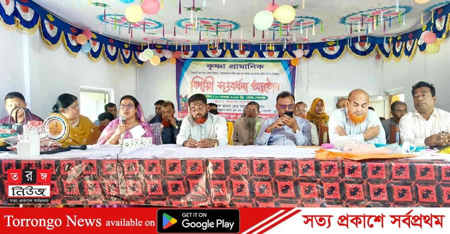 সহকারী প্রধান শিক্ষক রাশেদুল হক ফিরোজের সঞ্চালনায় এসময় বক্তব্য দেন, বিদায়ী সহকারী অধ্যাপক কৃষ্ণা প্রামানিক, তার স্বামী অবসরপ্রাপ্ত ব্যাংক কর্মকর্তা বীর মুক্তিযোদ্ধা বীরেন্দ্র নাথ সরকার, প্রভাষক আমজাদ হোসেন, সাজেদুর রহমান, মোজাফ্ফর হোসেন, মাহফুজুর রহমান, শিক্ষক আসাদুজ্জামান, ওমর ফারুক, শিক্ষার্থীদের মধ্যে মহুয়া আকতার, সাদিকা আফরিন সুপ্তি, যারিন তাসনিম মেঘলা প্রমূখ।