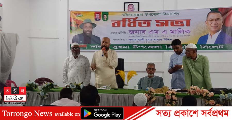 আজ সোমবার দক্ষিণ সুরমা উপজেলা বিএনপির বর্ধিত সভা আজ অনুষ্ঠিত হয়। সভায় প্রধান অতিথি হিসেবে উপস্থিত ছিলেন সিলেট-৩ আসনে ধানের শীষের মনোনয়ন প্রাপ্ত প্রার্থী, বিএনপি চেয়ারপার্সনের উপদেষ্টা ও যুক্তরাজ্য বিএনপির সভাপতি জনাব এম এ মালিক।