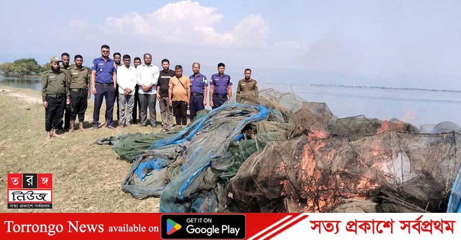 ‘জানাযায়, টাঙ্গুয়ার হাওরের আশপাশের এলাকায় চায়না ও দুয়ারী জাল দিয়ে প্রতিদিন মাছ শিকার করে আসছে অসাধু জেলে চক্ররা। এমন গোপন সংবাদ পেয়ে তাহিরপুর সহকারী কমিশনার (ভূমি) মোঃ শান্তনুরের নেতৃত্বে থানা পুলিশ ও আনসারদের নিয়ে বিপুল পরিমাণ চায়না দুয়ারী, মশারি জাল জব্দ করার পর স্থানীয় লোকজনের সামনে এসব জাল পুঁড়িয়ে ধ্বংস করা হয়। পুঁড়িয়ে দেয়া চায়না ও দুয়ারি জালের আনুমানিক মূল্য প্রায় ৫ লাখ টাকা।’ এসময় থানার পুলিশ সদস্য,আনসার সদস্যগণ, স্থানীয় সংবাদকর্মী ও কেন্দ্রীয় সার্বিক গ্রাম উন্নয়ন সমিতির সদস্যগণ উপস্থিত ছিলেন