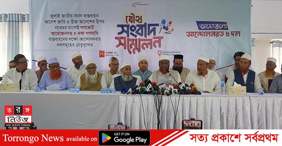 সংবাদ সম্মেলনে বলা হয়, শুক্রবার ৫ দফা দাবিতে সারাদেশে জেলা ও মহানগর পর্যায়ে বিক্ষোভ মিছিল অনুষ্ঠিত হবে। আর আগামী রোববার (১৬ নভেম্বর) সকাল ১১টায় ৮ দলের শীর্ষ নেতাদের বৈঠক অনুষ্ঠিত হবে। বৈঠক শেষে দুপুরে সংবাদ সম্মেলন অনুষ্ঠিত হবে। এর আগেই দাবি মেনে নেওয়া না হলে সংবাদ সম্মেলন থেকে প্রধান উপদেষ্টার কার্যালয় যমুনার সামনে অনির্দিষ্টকালের জন্য অবস্থানের কর্মসূচি ঘোষণা করা হবে।