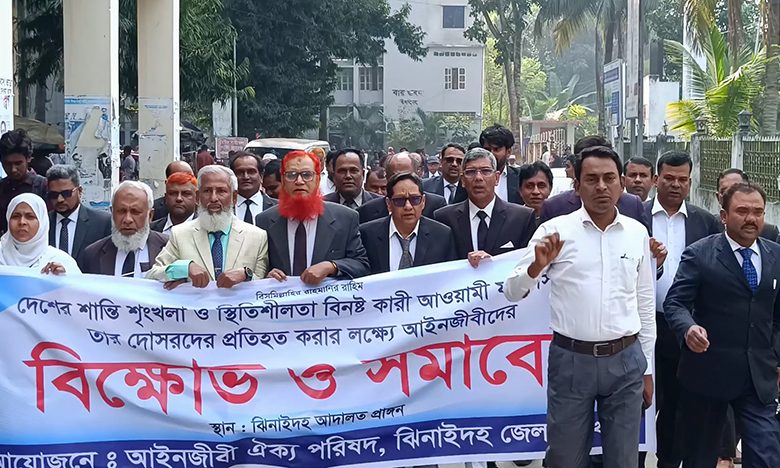 বুধবার সকাল সাড়ে ১০টায় জেলা আইনজীবী সমিতির কার্যালয়ের সামনে এ বিক্ষোভ সমাবেশ অনুষ্ঠিত হয়। ঝিনাইদহ আইনজীবী ঐক্য পরিষদের ব্যানারে সকাল ১০টায় বিক্ষোভ মিছিল বের হয়।