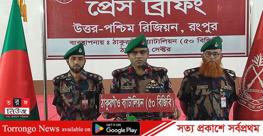 বুধবার (১২ নভেম্বর) দুপুরে ঠাকুরগাঁও ৫০ বিজিবি ব্যাটালিয়নের সদর দপ্তরে উত্তর-পশ্চিম রিজিয়ন, রংপুরের আয়োজনে অনুষ্ঠিত এক সংবাদ সম্মেলনে এ তথ্য জানান অধিনায়ক লেফটেন্যান্ট কর্নেল তানজীর আহম্মদ।