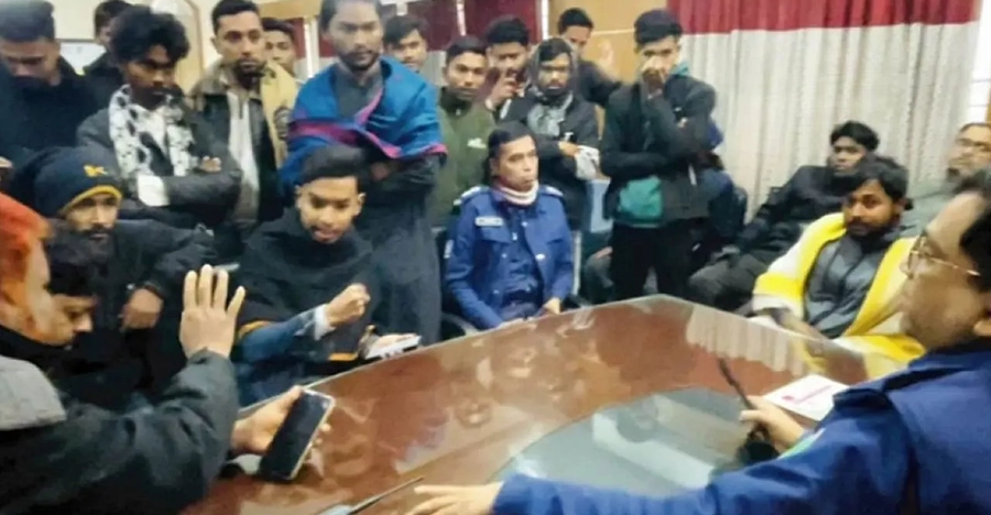 ভিডিওতে দেখা যায়, থানার ভেতরে বসে ওসির সঙ্গে বাগ্বিতণ্ডার এক পর্যায়ে মাহদী হাসান নিজেকে বৈষম্যবিরোধী আন্দোলনের নেতা দাবি করেন এবং বিভিন্ন সহিংস ঘটনার কথা উল্লেখ করে হুমকিমূলক বক্তব্য দিচ্ছেন।