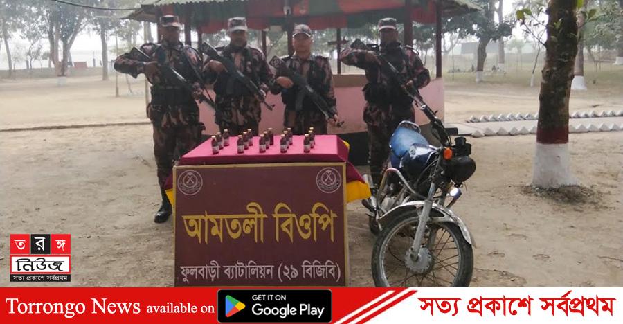 গতকাল শনিবার ফুলবাড়ী ব্যাটালিয়ন (২৯ বিজিবি) এর অধীনস্থ আমতলী বিওপি কর্তৃক ০১টি চোরাচালান প্রতিরোধ অভিযান পরিচালনা করে ১৫ বোতল ভারতীয় ইস্কফ সিরাপ এবং ০১টি মোটর সাইকেল আটক করতে সক্ষম হয়। আটককৃত মাদকদ্রব্য ও চোরাচালানী মালামালের সিজার মূল্য ১ লক্ষ ১৬ হাজার টাকা।