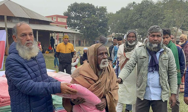 বীর মুক্তিযোদ্ধা মোঃ আওলাদ হোসেন প্রধান অতিথি হিসেবে তিনশতাধিক মানুষের মাঝে কম্বল বিতরণ করেন।