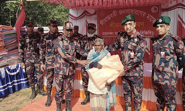 চাঁপাইনবাবগঞ্জ সীমান্তে ৩০০ মানুষের মাঝে কম্বল বিতরণ করেছে বিজিবি