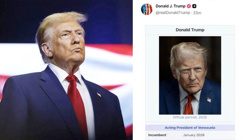 ডোনাল্ড ট্রাম্প ঘোষণা করেছেন, তিনি ‘ভেনেজুয়েলার ভারপ্রাপ্ত প্রেসিডেন্ট, দায়িত্বকাল জানুয়ারি ২০২৬।’ সামাজিক যোগাযোগমাধ্যমে দেওয়া একটি পোস্টে তিনি এই দাবি করেন। পোস্টটিতে একটি সম্পাদিত উইকিপিডিয়া পাতার আদলে তৈরি ছবি ব্যবহার করা হয়, যেখানে ট্রাম্পের সরকারি প্রতিকৃতি দেখানো হয় এবং তাকে যুক্তরাষ্ট্রের ৪৫তম ও ৪৭তম প্রেসিডেন্ট হিসেবে উল্লেখ করার পাশাপাশি ভেনেজুয়েলার ‘ভারপ্রাপ্ত প্রেসিডেন্ট’ হিসেবেও তালিকাভুক্ত করা হয়।
