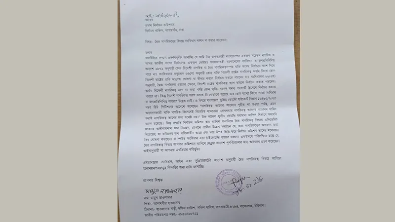 দ্বৈত নাগরিকত্ব ইস্যুতে সংবিধান লঙ্ঘন: সিইসিকে চিঠি