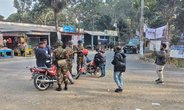 নির্বাচন সামনে রেখে চরভদ্রাসনের মেইন পয়েন্টে যৌথ বাহিনীর চেকপোস্ট