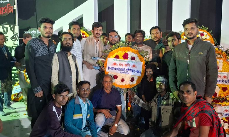 শনিবার প্রহরে ১২.১ মিনিটে নওগাঁ জেলা শহীদ মিনারে দলটির নেতাকর্মীরা সমবেত হন। এসময় তারা মহান ভাষা আন্দোলনের বীর শহীদদের প্রতি গভীর শ্রদ্ধা জানিয়ে পুষ্পস্তবক অর্পণ করেন।