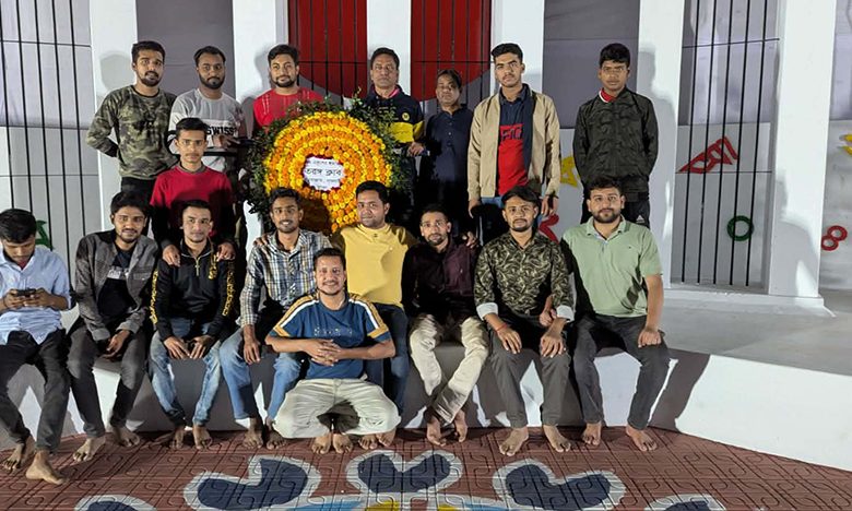 ধামরাইয়ে একুশের প্রথম প্রহরে শহীদ মিনার বেদীতে তরঙ্গ ক্লাবের শ্রদ্ধার্ঘ্য অর্পণ