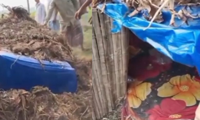 দীর্ঘ দিন ধরে লোকচুক্ষুর আড়ালে থাকা ঘরটিকে ঘিরে অপরিচিত মানুষদের আনাগোনায় সন্দেহ হয় স্থানীয়দের। পরে স্বদলবলে ঘটনাস্থলে গিয়ে বিস্মিত হন তারা। কুচরিপানা দিয়ে ঢাকা মাছের ঘের নির্মানের সামগ্রী দিয়ে নির্মিত ঘরটিকে দূর থেকে বুঝার কোনো উপায় নেই। বুড়ি নদীর তীরের এ ঘরটিকে দূর থেকে দেখলে মনে হবে উচু মাটির ডিবি।