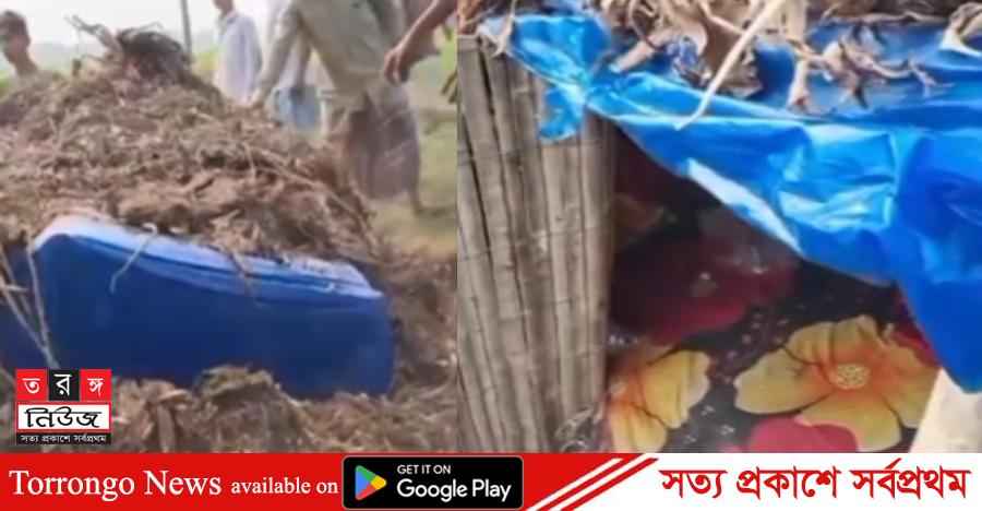 দীর্ঘ দিন ধরে লোকচুক্ষুর আড়ালে থাকা ঘরটিকে ঘিরে অপরিচিত মানুষদের আনাগোনায় সন্দেহ হয় স্থানীয়দের। পরে স্বদলবলে ঘটনাস্থলে গিয়ে বিস্মিত হন তারা। কুচরিপানা দিয়ে ঢাকা মাছের ঘের নির্মানের সামগ্রী দিয়ে নির্মিত ঘরটিকে দূর থেকে বুঝার কোনো উপায় নেই। বুড়ি নদীর তীরের এ ঘরটিকে দূর থেকে দেখলে মনে হবে উচু মাটির ডিবি।