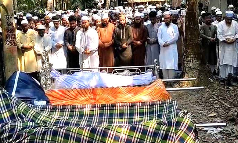 শুক্রবার (২৭ মার্চ) দুপুরে লক্ষ্মীপুর সদর উপজেলার তিতারকান্দি গ্রামে শ্বশুরবাড়ির পারিবারিক কবরস্থানে পাশাপাশি চারজনকে দাফন করা হয়। এর আগে স্থানীয় জামে মসজিদ প্রাঙ্গণে জানাজা অনুষ্ঠিত হয়। জানাজায় বিপুলসংখ্যক মানুষ অংশ নেন। একসাথে চারজনের জানাজা ও দাফনের দৃশ্য উপস্থিত সবাইকে স্তব্ধ করে দেয়।