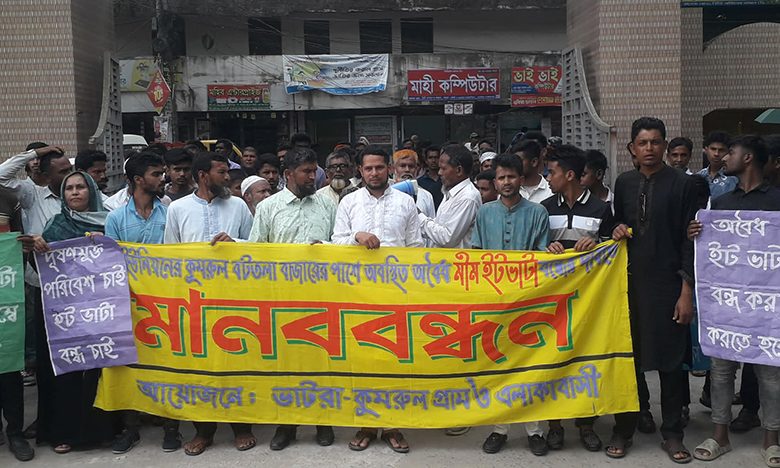 মহম্মদপুরে অবৈধ ইটভাটা বন্ধের দাবিতে বিক্ষোভ ও মানববন্ধন