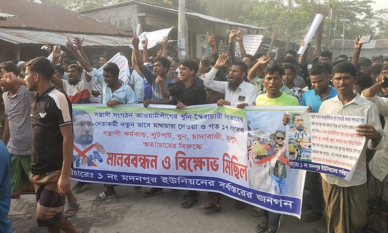 ভোলায় ইউপি চেয়ারম্যানের বিরুদ্ধে ঝাড়ু মিছিল