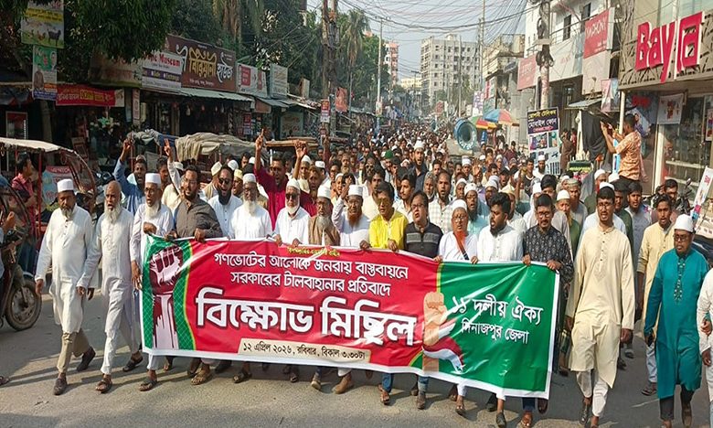 দিনাজপুরে ১১ দলীয় ঐক্যের বিক্ষোভ মিছিল ও সমাবেশ