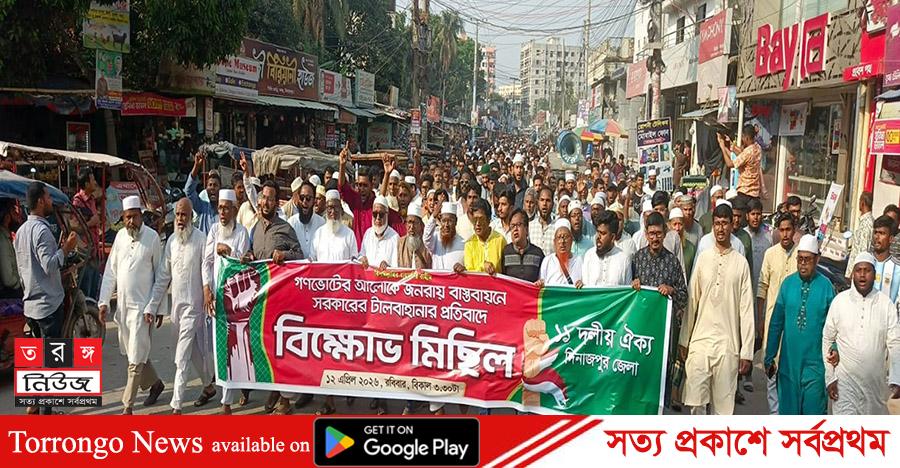 দিনাজপুর ইনস্টিটিউট মাঠে ১২ এপ্রিল রোববার বিকালে ১১ দলীয় ঐক্য আয়োজিত গণভোটের আলোকে জনরায় বাস্তবায়নে সরকারের টালবাহানার প্রতিবাদে কেন্দ্র ঘোষিত কর্মসূচীর অংশ হিসেবে বিক্ষোভ মিছিলপূর্ব সমাবেশ বক্তারা এসব কথা বলেন।