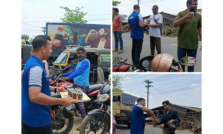 শার্শায় তীব্র রোদ্রে পাম্পে দাঁড়িয়ে থাকা বাইকারদের শরবত খাওয়াচ্ছেন সুমি মটরস কতৃপক্ষ