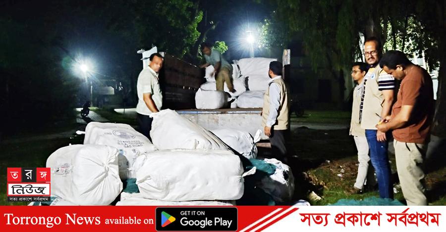 উল্লাপাড়া (সিরাজগঞ্জ) প্রতিনিধি: সিরাজগঞ্জের উল্লাপাড়ায় সদাগর এক্সপ্রেস লিমিটেড এর ট্রান্সপোর্টে অভিযান চালিয়ে বিপুল পরিমাণ নিষিদ্ধ চায়না দুয়ারী জাল জব্দ করেছে উপজেলা প্রশাসন। বুধবার রাত সাড়ে ৮টার দিকে পৌর শহরের শ্যামলীপাড়া বাসস্ট্যান্ডে অবস্থিত ট্রান্সপোর্টটির শাখা অফিসে এ অভিযান পরিচালনা করা হয়। এতে নেতৃত্ব দেন সিরাজগঞ্জ জেলা মৎস্য কর্মকর্তা মোঃ ফজলুর রহমান।