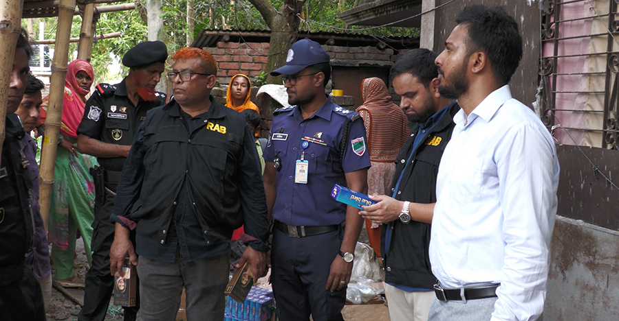 ঝিনাইদহ র্যাব-৬’র কোম্পানি কমান্ডার স্কোয়াড্রন লিডার মো. ইমামীম মুবীন সরকার সুমন জানান, গোপন সংবাদের ভিত্তিতে তারা জানতে পারে মহিলা কলেজ পাড়ার বকুল হোসেন নামের এক ব্যক্তির বাড়িতে নকল প্রসাধনী তৈরী করা হচ্ছে। এমন সংবাদের ভিত্তিতে সেখানে অভিযান চালায় তারা। সেসময় জব্দ করা হয় নকল চায়না ব্র্যান্ডের পারফিউম, ফেস ক্রিম, তেলসহ বিভিন্ন ব্র্যান্ডের লেবেল ও বোতল।