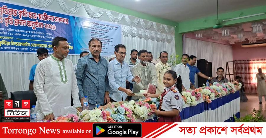 কুষ্টিয়া প্রতিনিধি: কুষ্টিয়ায় বৃত্তি প্রাপ্ত কৃতি ছাত্র-ছাত্রীদের সনদপত্র ও বৃত্তি প্রদান অনুষ্ঠিত হয়েছে। শনিবার (১৮ এপ্রিল) সকাল ১০টার দিকে কুষ্টিয়া রাইফেল ক্লাব অডিটোরিয়ামে কুষ্টিয়া কিন্ডারগার্টেন ওয়েলফেয়ার এ্যাসোসিয়েশন এ অনুষ্ঠানের আয়োজন করেন।