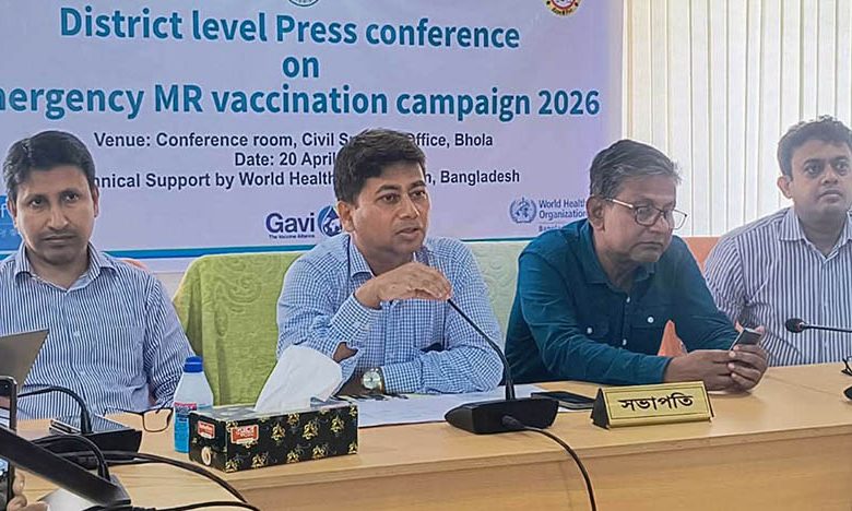 ২০ এপ্রিল দুপুরে ভোলা ২৫০ শয্যা জেনারেল হাসপাতালের সিভিল সার্জনের সভাকক্ষে সংবাদ সম্মেলনে সিভিল সার্জন ডাক্তার মনিরুল ইসলাম বলেন, এই কর্মসূচির আওতায় ৬ মাস থেকে ৫ বছরের কম বয়সী সব শিশুকে এক ডোজ হাম-রুবেলা টিকা প্রদান করা হবে।