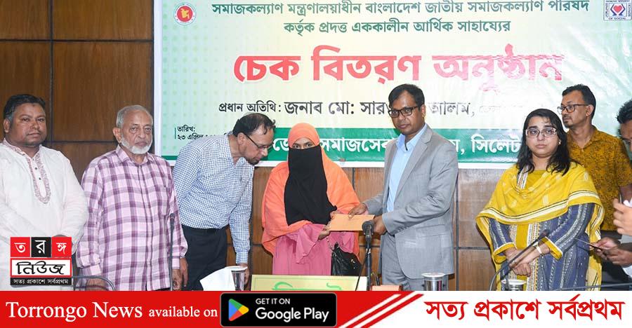 জেলা সমাজসেবা কার্যালয়,সিলেট এর উপ পরিচালক মোঃ আব্দুর রফিকের সভাপতিত্বে ও জেলা প্রশাসক কার্যালয়ের সহকারী কমিশনার ও নির্বাহী ম্যাজিস্ট্রেট তানভীর হোসাইন সজীবের পরিচালনায় অনুষ্ঠিত চেক বিতরণ অনুষ্ঠানে আরো উপস্থিত ছিলেন,সিলেটের অতিরিক্ত জেলা প্রশাসক (সার্বিক) সাঈদা পারভীন,সাংবাদিক ও কলামিস্ট আফতাব চৌধুরী,সিলেট অনলাইন প্রেসক্লাব সভাপতি গোলজার আহমদ হেলাল প্রমুখ।