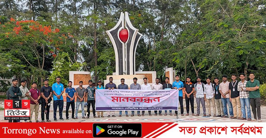প্রেসক্লাবের সাধারণ সম্পাদক সাজিদ খানের সঞ্চালনায় মানববন্ধনে বক্তারা সাংবাদিকদের ওপর হামলার ঘটনায় জড়িত ব্যক্তিদের দ্রুত শনাক্ত, মামলা গ্রহণ, আইনগত ব্যবস্থা গ্রহণ, বিশ্ববিদ্যালয় থেকে আইনানুগ ব্যবস্থা গ্রহণ এবং সকল ক্যাম্পাসে স্বাধীন সাংবাদিকতার পরিবেশ নিশ্চিত করার দাবি জানান।
