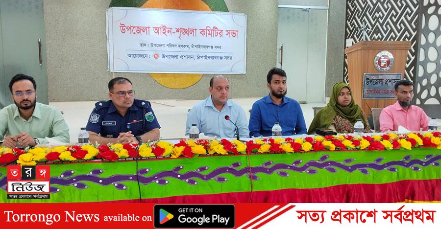 ফেরদৌস সিহানুক (শান্ত)চাঁপাইনবাবগঞ্জঃ চাঁপাইনবাবগঞ্জ সদর উপজেলায় আইন-শৃঙ্খলা কমিটির মাসিক সভা অনুষ্ঠিত হয়েছে। সোমবার (২৭ এপ্রিল) সকাল ১১টায় সদর উপজেলা প্রশাসনের আয়োজনে উপজেলা পরিষদ হলরুমে এ সভা অনুষ্ঠিত হয়। সভায় সভাপতিত্ব করেন সদর উপজেলা নির্বাহী কর্মকর্তা (ইউএনও) মারুফ আফজাল রাজন। সভায় উপস্থিত ছিলেন সহকারী কমিশনার (ভূমি) মোঃ ইকরামুল হক নাহিদ, চাঁপাইনবাবগঞ্জ সদর মডেল থানার অফিসার ইনচার্জ মোঃ একরামুল হোসাইন, জেলা প্রাণিসম্পদ কর্মকর্তা ডা. মোসাঃ শারমিন আক্তার, উপজেলা কৃষি কর্মকর্তা মোঃ সুনাইন বিন জামান এবং সিনিয়র উপজেলা মৎস্য কর্মকর্তা (অ:দা:) মোঃ ইমরুল কায়েসসহ বিভিন্ন দপ্তরের কর্মকর্তারা।