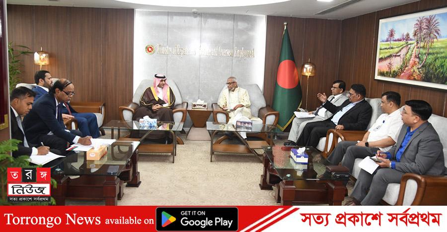 রাষ্ট্রদূত আরো বলেন, আকামার ফি নিয়োগকারী কর্তৃপক্ষের বহন করার কথা থাকলেও অনেক ক্ষেত্রে তা কর্মীদের ওপর চাপিয়ে দেওয়া হয়, যা হওয়া উচিত নয়। তিনি সৌদি আরবে নিবন্ধিত ৯৯০টি এজেন্সি যারা নিয়ম মানে না, তাদের জবাবদিহিতার আওতায় আনার জন্য মন্ত্রীকে অনুরোধ জানান। কর্মীদের অভিযোগ দ্রুত নিষ্পত্তির লক্ষ্যে সৌদি সরকার ও দূতাবাসের সাথে সমন্বয় করে একটি বিশেষ অ্যাপ তৈরির প্রস্তাবও দেন তিনি। শিক্ষা সহায়তার বিষয়ে তিনি জানান, বর্তমানে ২৫০ জন বাংলাদেশি শিক্ষার্থীকে স্কলারশিপ দেওয়া হচ্ছে, যা ভবিষ্যতে ৫০০ তে উন্নীত করার পরিকল্পনা রয়েছে। তিনি সৌদি আরব হতে সিলেট বিমানবন্দরে সৌদি এয়ারলাইন্সের ফ্লাইট চালুর জন্য প্রয়োজনীয় ব্যবস্থা গ্রহনের আহ্বান জানান।