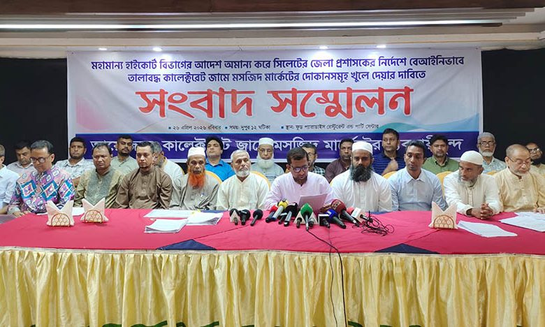 সিলেটে কালেক্টরেট জামে মসজিদ মার্কেটের ব্যাবসায়ীদের সংবাদ সম্মেলন