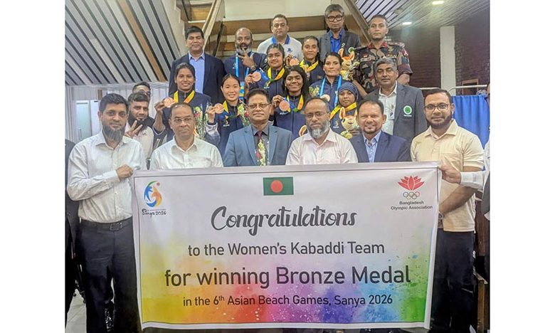চীনের সানিয়ায় এশিয়ান বিচ গেমসে অভাবনীয় সাফল্য অর্জন শেষে গতকাল রাতে দেশে ফিরেছে বাংলাদেশ নারী কাবাডি দল। গেমসে ব্রোঞ্জ পদক জয়ের মাধ্যমে লাল-সবুজের পতাকাকে আন্তর্জাতিক পরিমণ্ডলে উজ্জ্বল করা এই বীরকন্যাদের হযরত শাহজালাল আন্তর্জাতিক বিমানবন্দরে অভ্যর্থনা জানানো হয়।