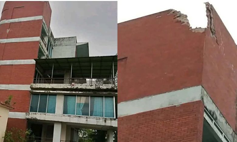 প্রত্যক্ষদর্শীরা জানান, হঠাৎ বিকট শব্দে পুরো এলাকা কেঁপে ওঠে। পরে দেখা যায়, বজ্রপাতের আঘাতে ভবনের ছাদের কোণায় অবস্থিত সিঁড়িঘরের প্যারাপেট দেয়ালের একটি অংশ ভেঙে নিচে পড়ে যায়। পাশাপাশি অবশিষ্ট অংশে ফাটল দেখা দিয়েছে এবং ভবনের দুটি থাই গ্লাসও ক্ষতিগ্রস্ত হয়েছে।
